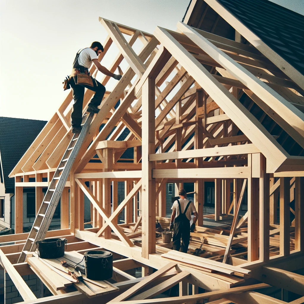 Tesařství zahrnuje například dodávku a montáž vazníků, krovů, laťování, bednění a palubek.